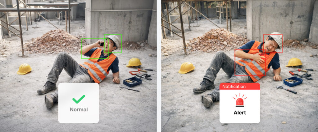 물론 ‘객체 인식’ 기술이 들어간 기존 지능형 CCTV도 있었지만 한계는 명확했습니다. 기존 딥러닝(CNN) 방식은 ‘사람이 바닥에 누워있다’는 형태는 감지할 수 있었지만, ‘왜’ 누워있는지는 알지 못했기 때문입니다. 공사 현장에서 잠시 쉬는 중인지, 바닥을 청소하는 중인지, 아니면 정말 아파서 쓰러진 것인지 구분하지 못한 채 무조건 경보를 울렸습니다. 결과적으로 잦은 오보로 인해 정작 중요한 순간에 경보를 무시하게 만드는 ‘양치기 소년’이 되기 일쑤였죠.
