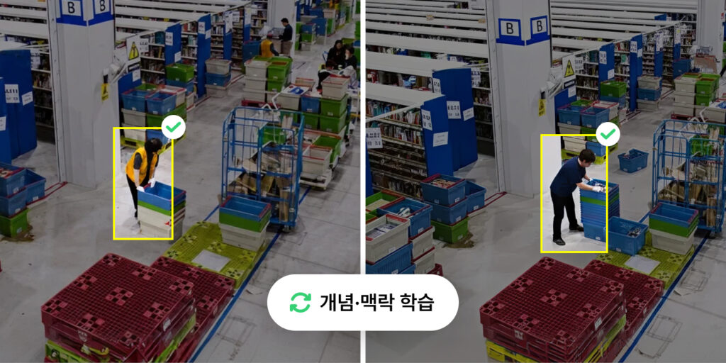 반면, 생성형 AI 기반 관제는 이 지점을 근본적으로 개선합니다. 유니폼 색이 바뀌거나 처음 보는 장비가 등장해도, 인식의 기준이 쉽게 흔들리지 않습니다. 이미 방대한 데이터를 통해 세상에 대한 일반적인 개념과 맥락을 학습하고 있어, 대부분의 경우에는 별도 재학습 없이도 대응할 수 있고, 필요한 경우에도 아주 적은 학습만으로 빠르게 보완할 수 있기 때문입니다.