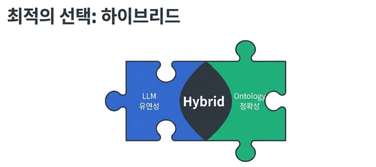결국 핵심은 “어떻게 하면 더 정확하고 의미 있는 연결 고리를 만들 것인가”에 달려 있습니다. 앞서 살펴본 세 가지 방식은 서로 경쟁 관계가 아닙니다. 최근에는 LLM의 유연함과 온톨로지의 정확성을 결합한 하이브리드 방식도 활발히 연구되고 있죠.