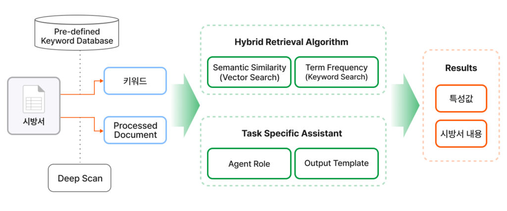 이처럼 DeepScan은 파편화된 시방서에서 단순히 정보를 찾는 수준을 넘어, AI가 문서를 사람처럼 입체적으로 이해하게 만듭니다. 이 정교한 변환 과정은 복잡한 시방서 속에서 단 하나의 스펙도 놓치지 않고 완벽한 견적을 뽑아낼 수 있는 탄탄한 기초가 됩니다.