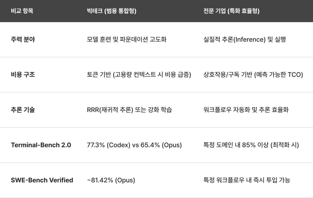 빅테크의 ‘범용 통합형’ 모델과 전문 기업의 ‘특화 효율형’ 모델은 2026년 AI 엔지니어링 스택의 양대 축을 형성하고 있습니다.