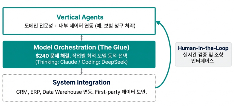 결과적으로 에이전트 전문 기업들의 생존 전략은 명확합니다. “누가 더 똑똑한 AI 뇌를 만드느냐”의 체급 싸움은 과감히 빅테크에게 맡겨둡니다. 대신, “그 똑똑해진 뇌를 실제 비즈니스 현장에 얼마나 기가 막히게, 저렴하게, 그리고 안전하게 안착시킬 것인가”에 모든 승부를 겁니다. 이것이 바로 거인들의 틈바구니 속에서도 이들이 자신만의 독자적인 생태계를 단단하게 구축해 나가는 비결입니다.