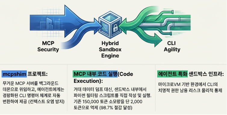 하지만 작업이 무사히 끝나거나 혹은 에이전트가 rm -rf 같은 치명적인 사고를 치는 순간, 이 실험실은 메인 시스템(호스트)에는 먼지 한 톨의 영향도 주지 않은 채 즉시 통째로 폐기되어 버립니다. 결국, 보안이 가장 취약하다는 CLI 아키텍처가 엔터프라이즈 실무 환경에 당당히 도입될 수 있었던 결정적인 이유는, 에이전트의 모든 돌발 행동을 0.1초 만에 안전하게 가둬버리고 소멸시키는 이 강력한 마이크로VM 플랫폼들의 등장 덕분입니다.