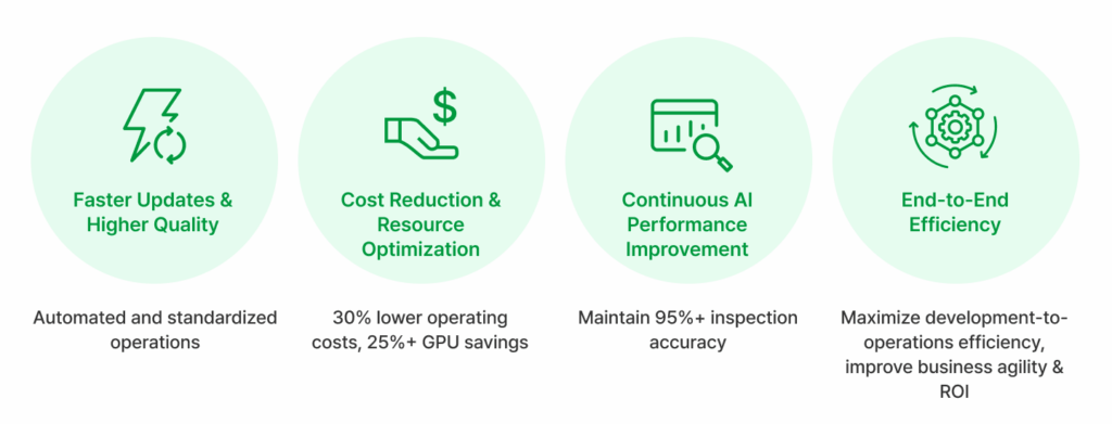 Significantly shortens the time required to release AI solutions by automating and standardizing the process from model development to deployment. Simultaneously, it guarantees stable quality for AI services by enhancing overall system efficiency.