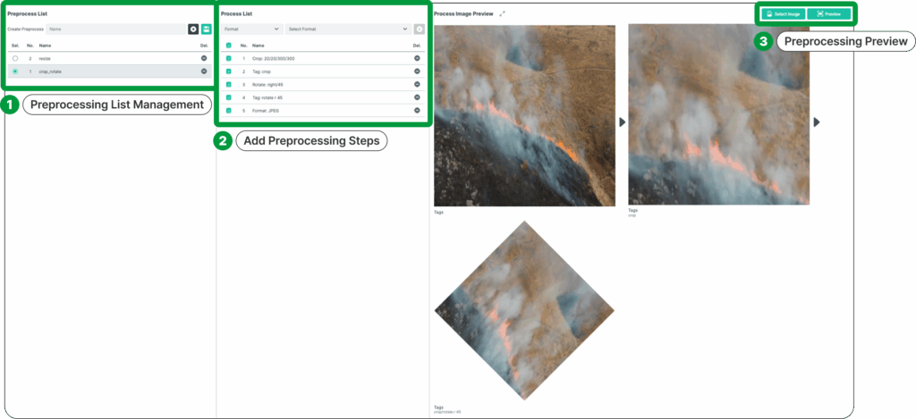 Supports image preprocessing at the tool level, and centralized data management enables history tracking and reuse.
