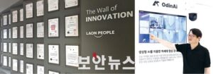 ▲LaonPeople’s patents and certifications (left) and CEO Seok-Joong Lee presenting technologies in the showroom. [BoanNews]